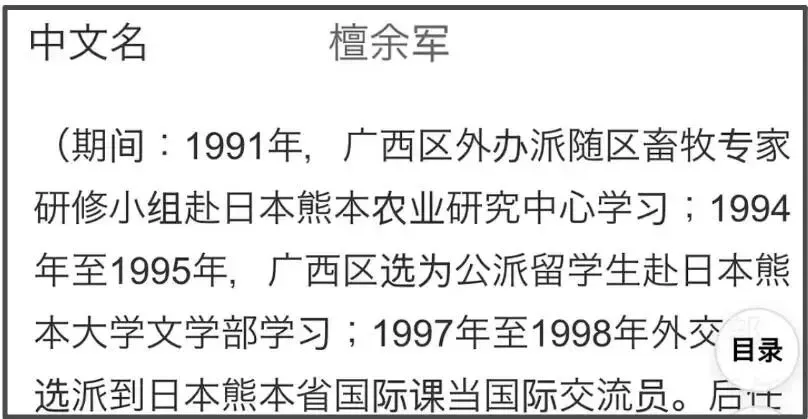 檀健次爸爸是体制内驻日人员,搜索檀健次爸爸的名字,就能看见他的全部履历。