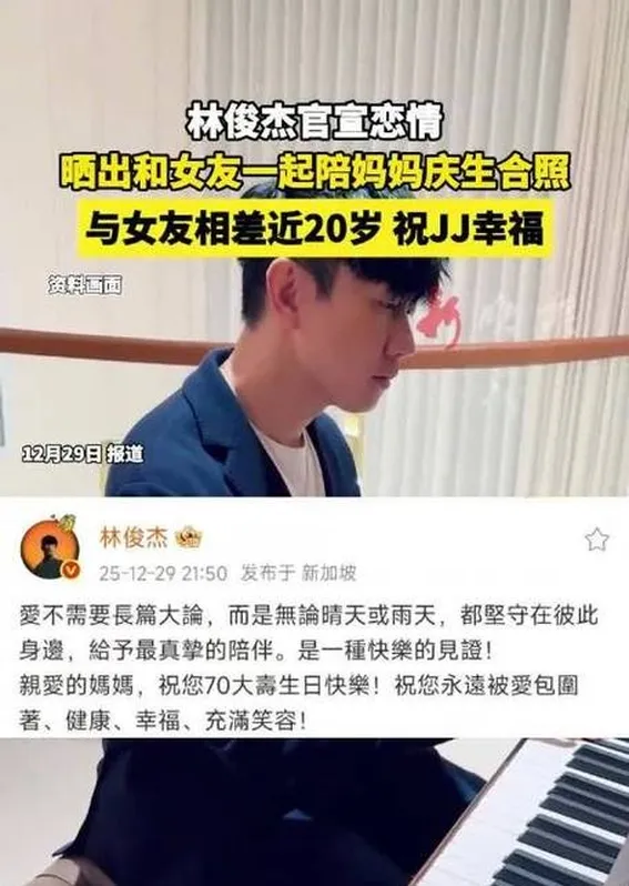 >林俊杰官宣恋情 带女友为妈妈庆生