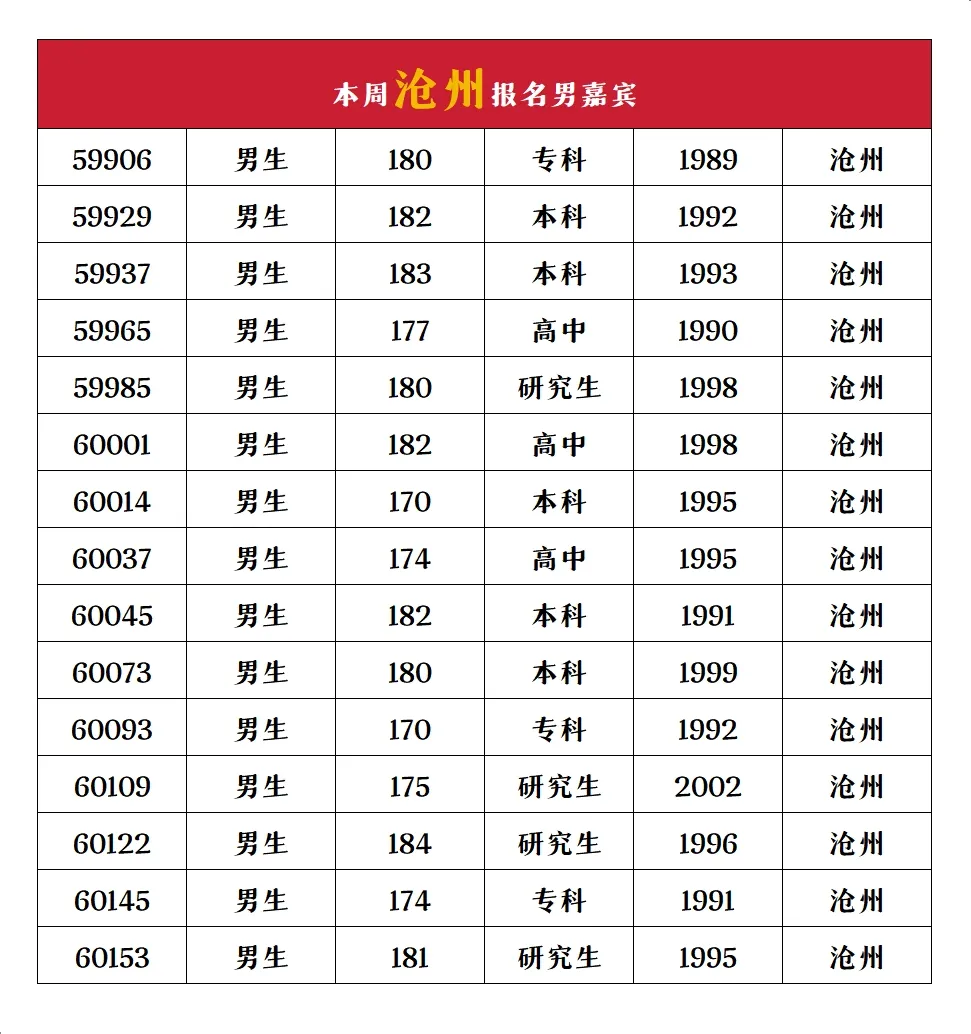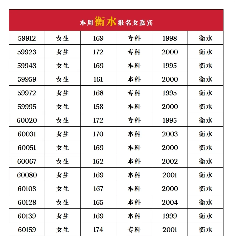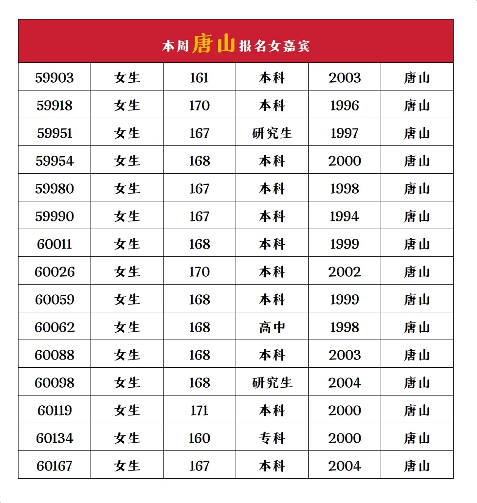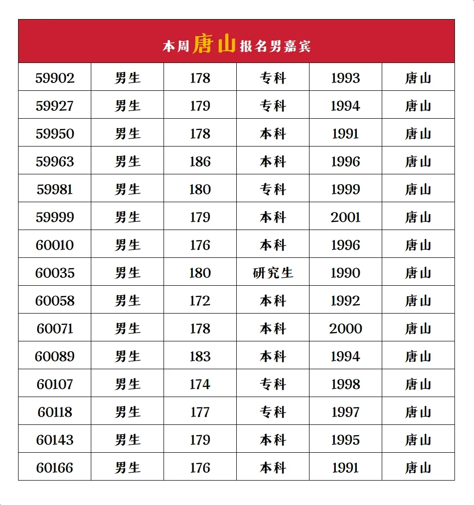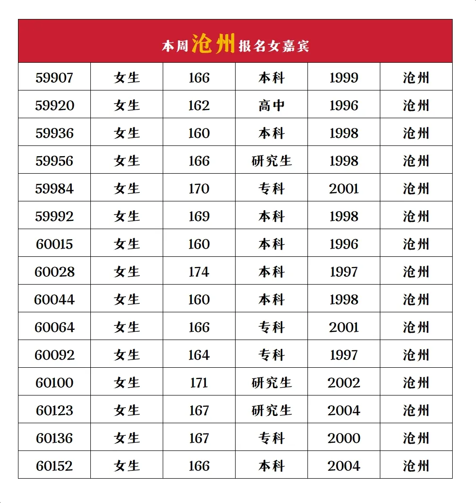 本期恋爱匹配已报名嘉宾,篇幅有限,每个城市仅展示部分嘉宾,目前河北开放城市:石家庄、保定、唐山、邯郸、沧州、邢台、廊坊、衡水、张家口。