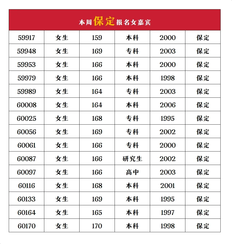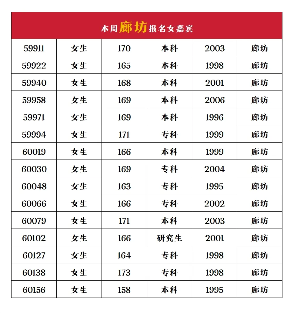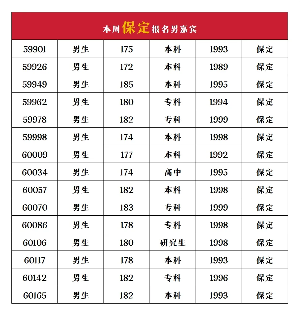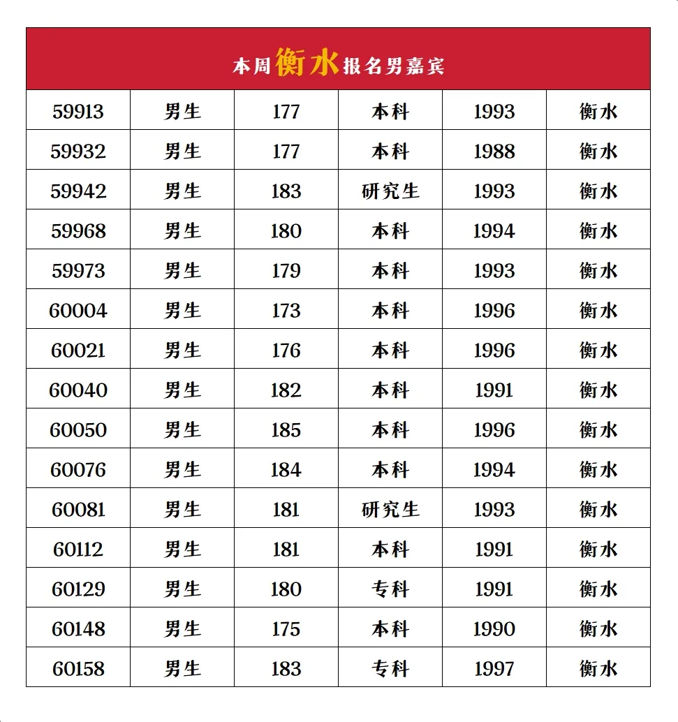 本期恋爱匹配已报名嘉宾,篇幅有限,每个城市仅展示部分嘉宾,目前河北开放城市:石家庄、保定、唐山、邯郸、沧州、邢台、廊坊、衡水、张家口。