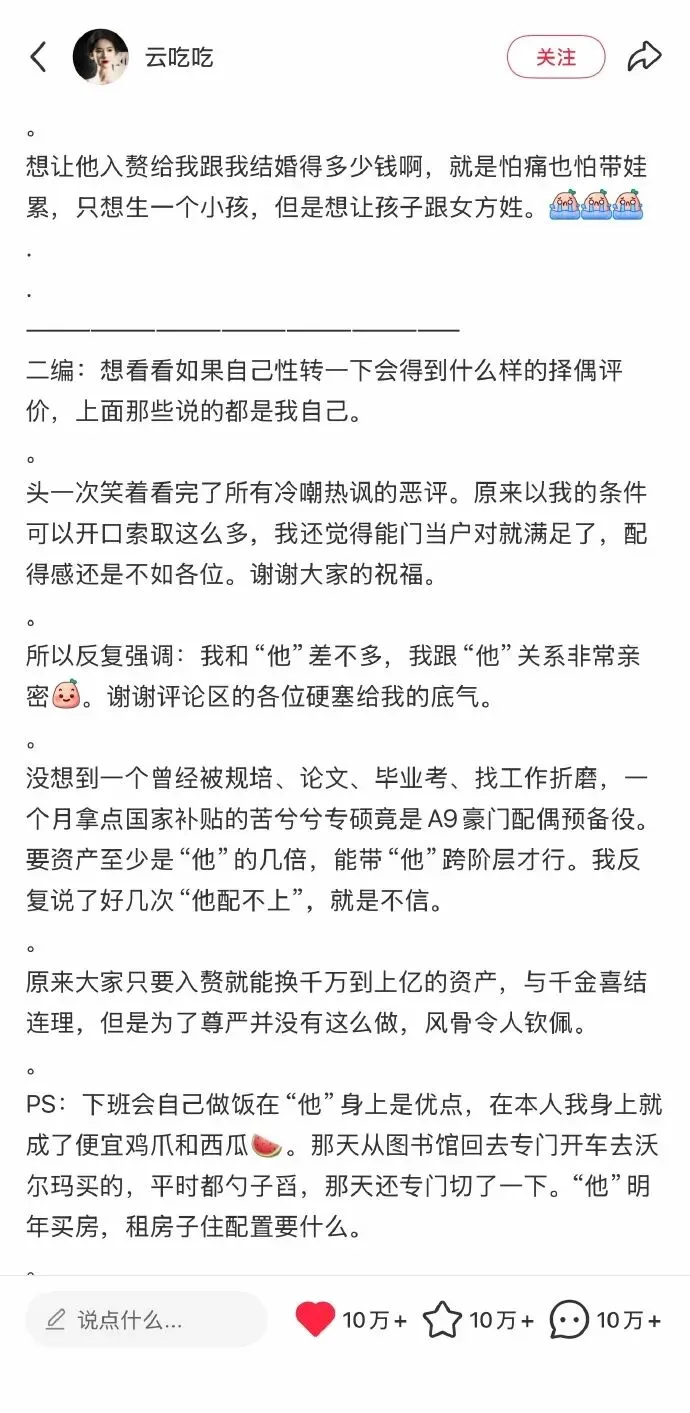 婚恋双标真相:千万上门费 vs 20万彩礼