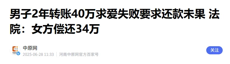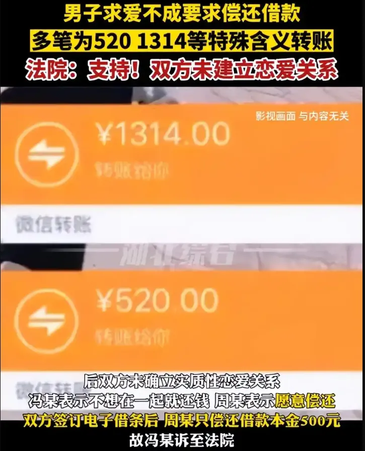 素材来源:光明网《男子多次转账1314元钱款后与女方未确立恋爱关系 法院判女方返还》、湖北电视综合频道《男子求爱不成要求偿还520等转账,法院:支持,系未建立恋爱关系》、中原网《男子2年转账40万求爱失败要求还款未果 法院:女方偿还34万》来源:未来树父母学堂