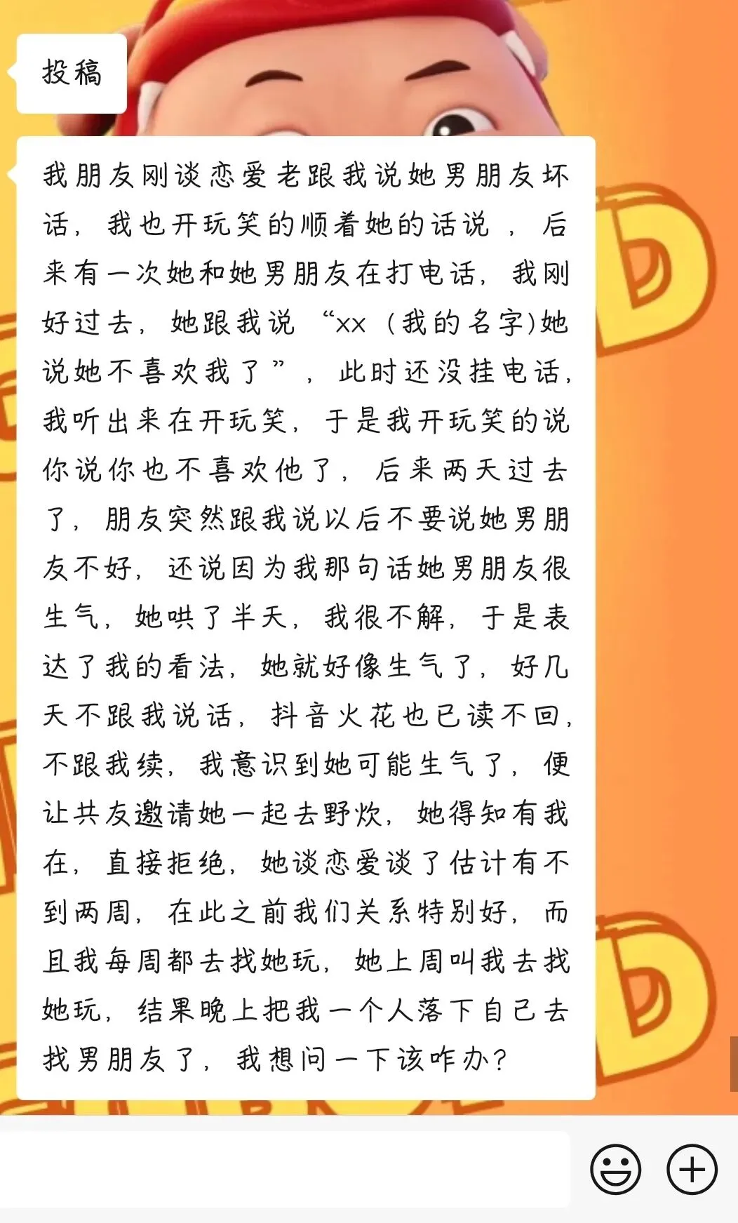 >某邑同学投稿:我朋友刚谈恋爱老跟我说她男朋友坏话