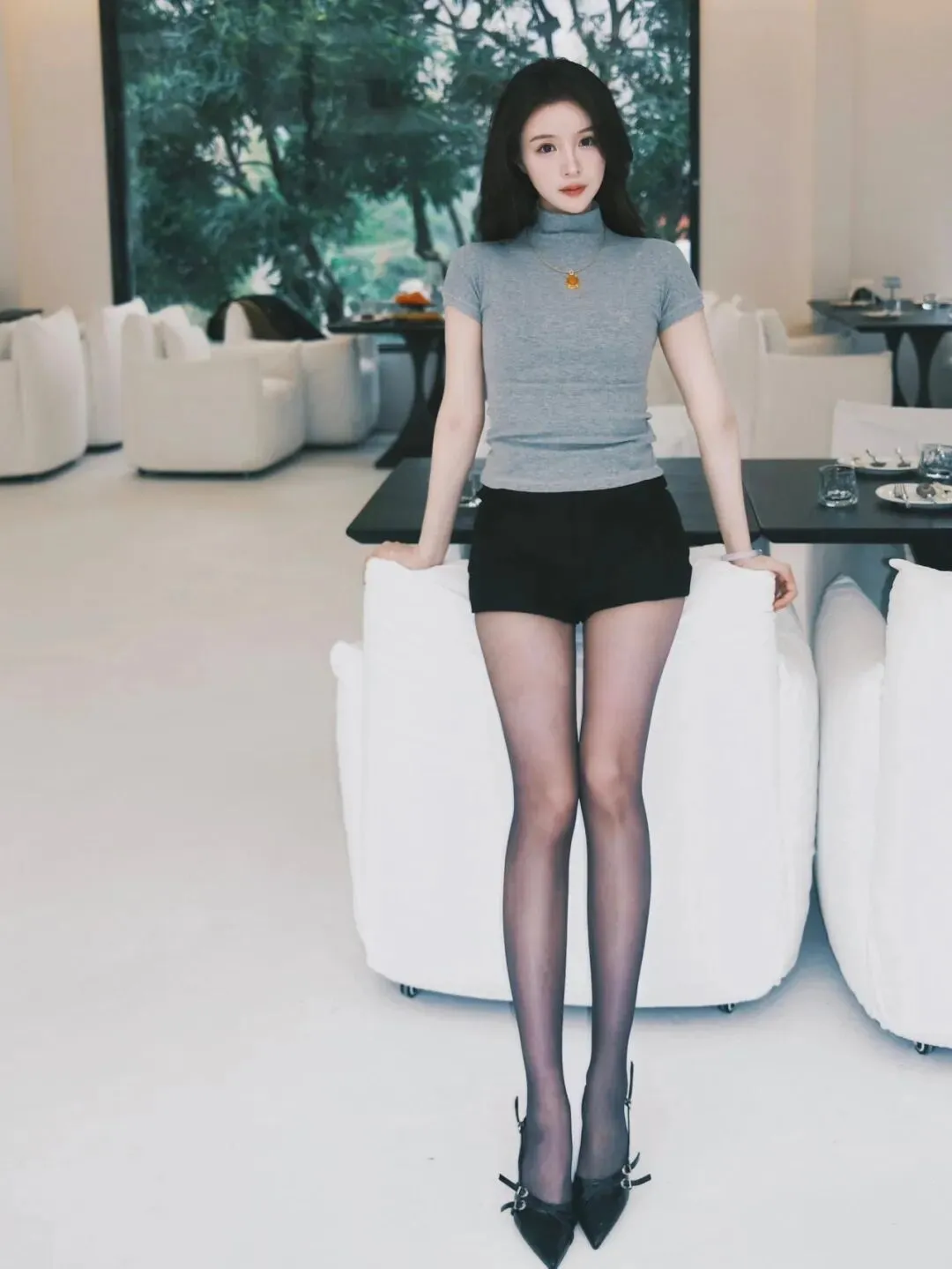 「灰高领 + 黑短裙 + 黑丝,又辣又欲这谁顶得住啊」