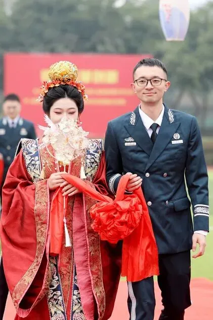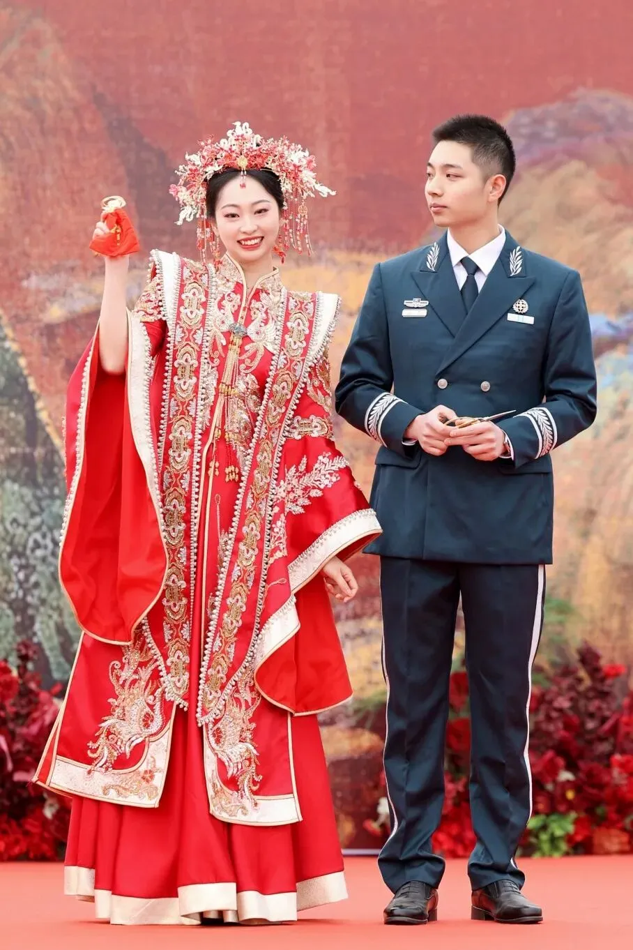 【军人婚恋】当孔雀蓝遇上中国红 | 这场军营集体婚礼,藏着最动人的家国浪漫
