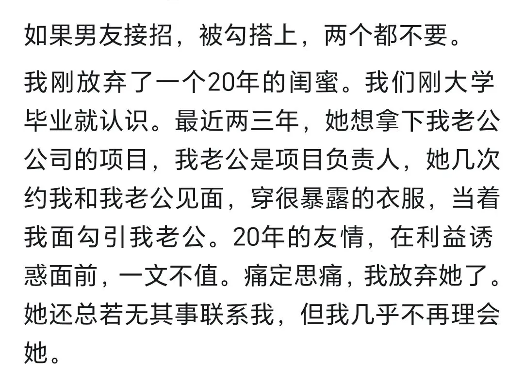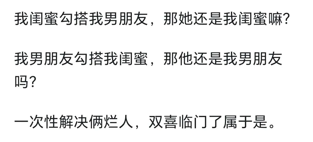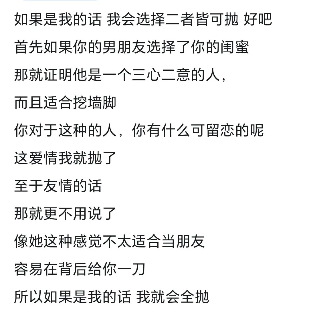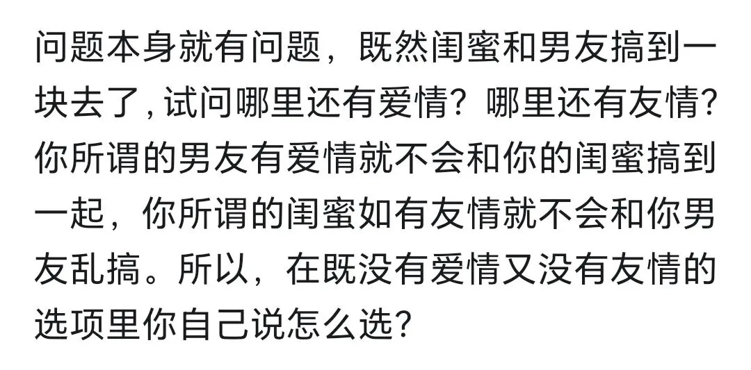>如果闺蜜和男朋友勾搭,你是选择友情还是爱情?网友:只看到了奸情