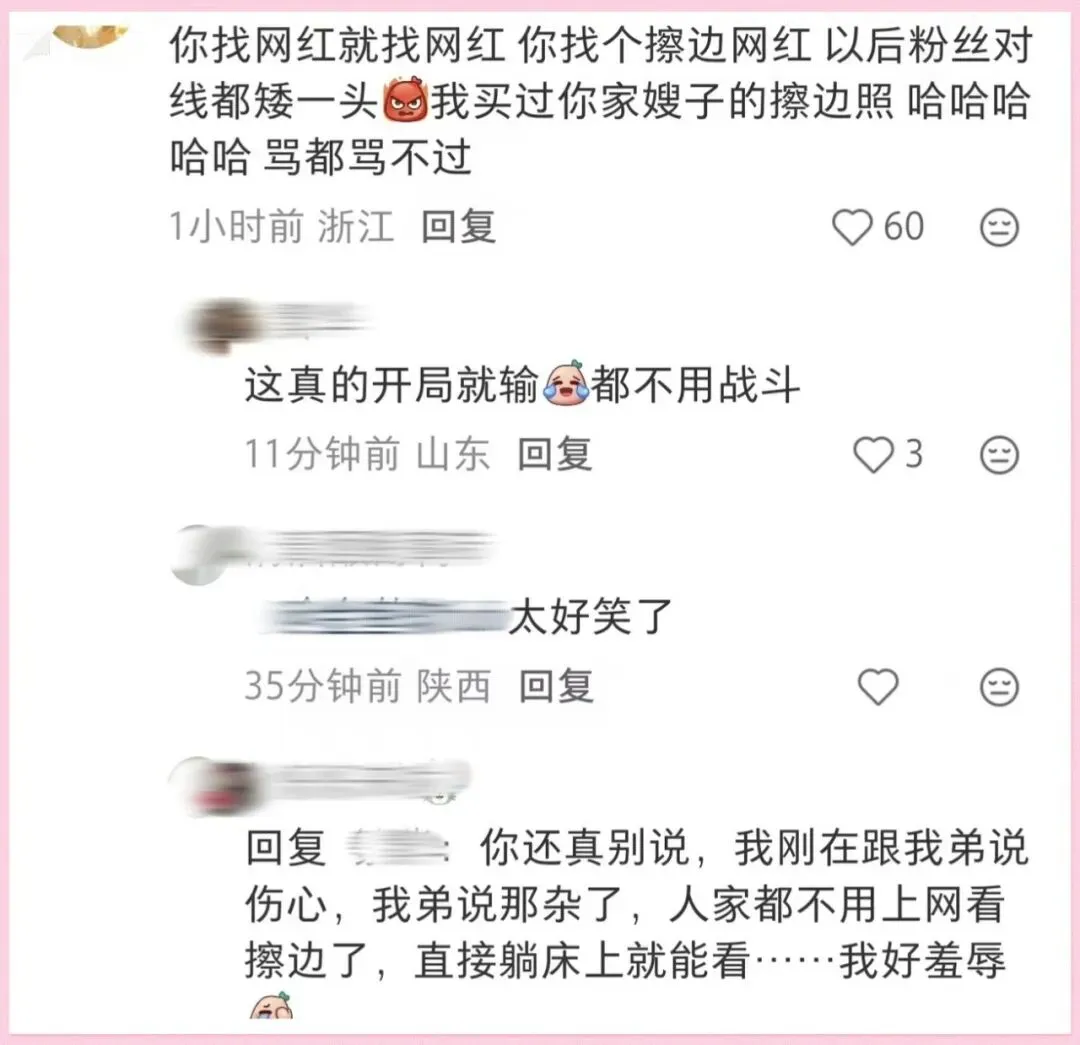 扒出来她之前在网上发的一些大尺度照片,直接骂她是“擦边女”。还有人研究她的衣服和首饰,表示大部分都是假货,目的是假扮富二代钓凯子......