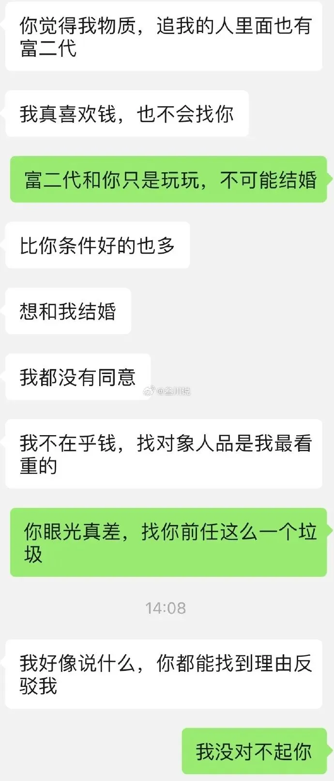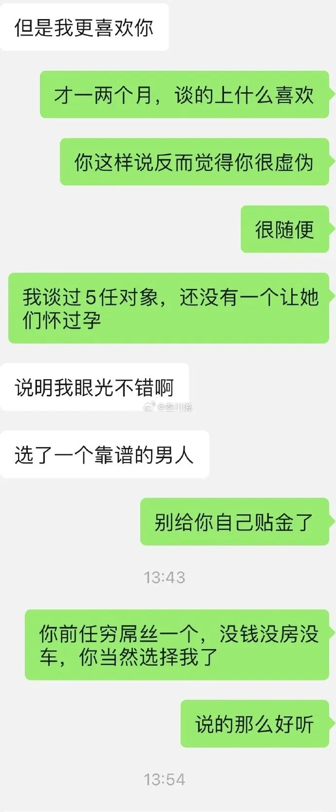 网上看到一男生投稿给博主@叁川说