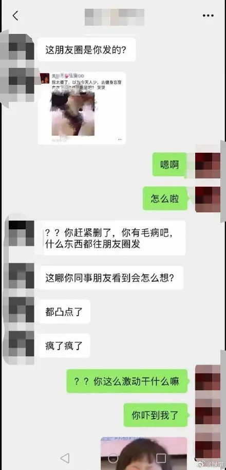 居然在朋友圈配文字说没穿内衣,也是醉了。