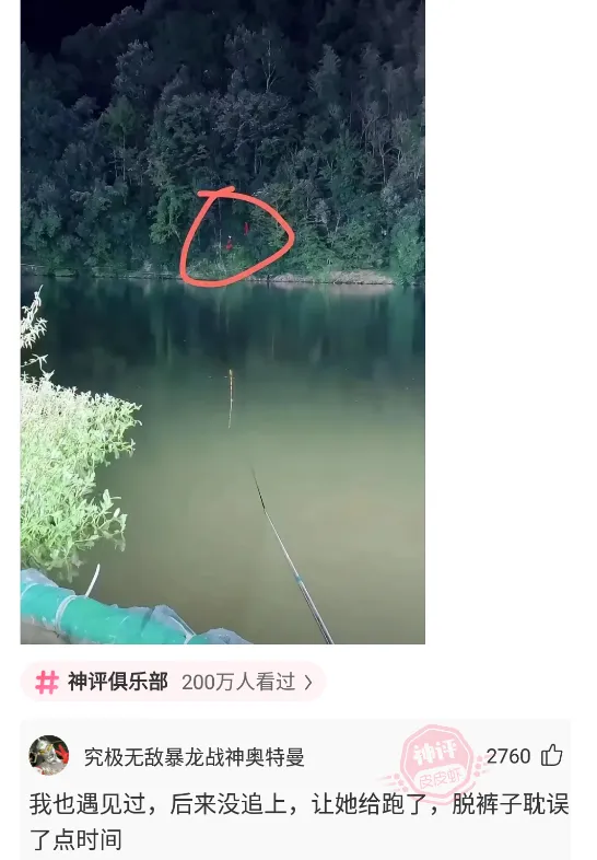 昨天晚上去钓鱼发现的,当时给我人吓傻了,鱼竿都没拿就跑了。