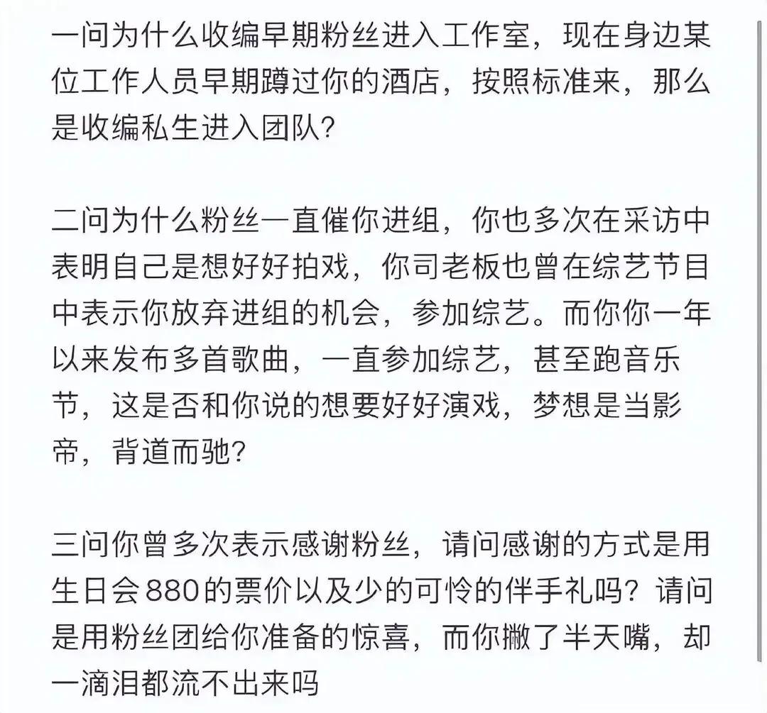 最让老粉心寒的,是那场票价高达880元的生日会。满怀期待的粉丝到场后,发现所谓的“重磅伴手礼”分量单薄,而偶像本人在台上的互动也显得敷衍、流程化。“他把我们的支持,当成了理所当然的提款机。”一位脱粉回踩的粉丝这样写道。