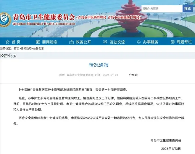 这事儿一出,整个护士圈都炸了锅,随后官方通报证实,涉事护士是青岛圣德脑血管病医院的职工,在值班期间违反工作纪律,擅自将男朋友带入医院内二科病房区协助其工作,目前已被医院停职处理,市卫健综合监督执法部门也介入了调查。