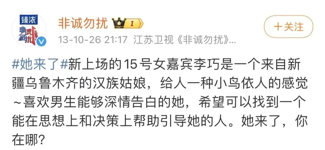 早在2013年,森林北曾经参加过《非诚勿扰》,当时她24岁。