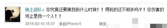 章子怡则在当天下午发博怒斥:你“你究竟还要黑我到什么时候!得到的还不够多吗?!你伤害的何止是我一个人!”。