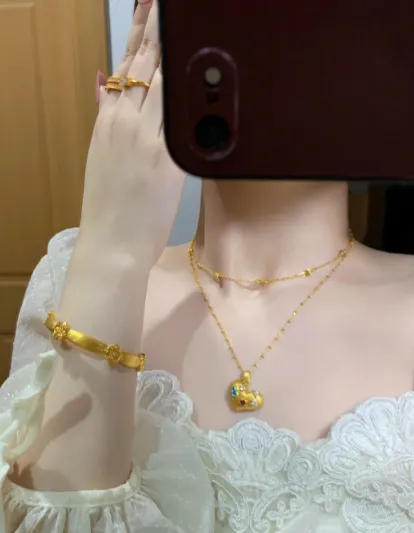 很多直男会纠结 送黄金是不是土 真的不是的 关键在款式和搭配 细一点 简洁线条 再加一点小巧思 比如小坠或者不规则的圈 高级感直接拉满 朋友男朋友后来照抄买了一套 结果她发朋友圈下边一排夸的 哈哈哈