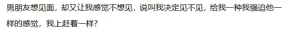 你可以问他:你说叫我决定见不见,现在我决定见了。你会感觉被强迫了吗?你喜欢这样被强迫的感觉吗?为什么?