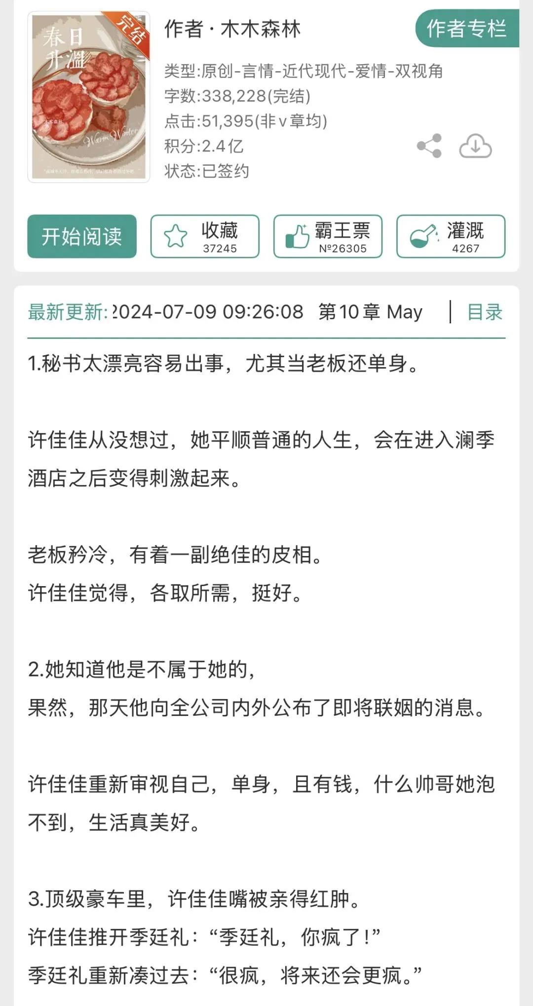 这篇简直是梦女题材,好不真实,像是做了一个华丽的梦,秘书&总裁总是让人浮想联翩,对应到他俩身上更是,一个早有心动💓,一个馋他身子,成年男女荷尔蒙爆炸,蹦极时男主直接亲上去,女主回应,自此开始,后面简直是大型A微 现场,亲的那叫一个沉浸,出去露营直接钻女主⛺️,一亲就是四十五分钟,我的妈这不会亲秃噜皮吗😂……男主把她拽车上亲、在露台亲、更别说办公室,这吻接的,朋友、下属都成了他们的cosplay的一环,啧啧啧