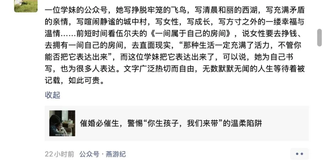 支撑我写下去的底气,藏在几处温暖的回响里。是大学文学社学姐的转发留言。我曾因自卑躲在角落,仰望她台上发光的模样;后来退出社团,大三考研时她仍把所有资料尽数相赠,工作后也时时给我鼓励。
