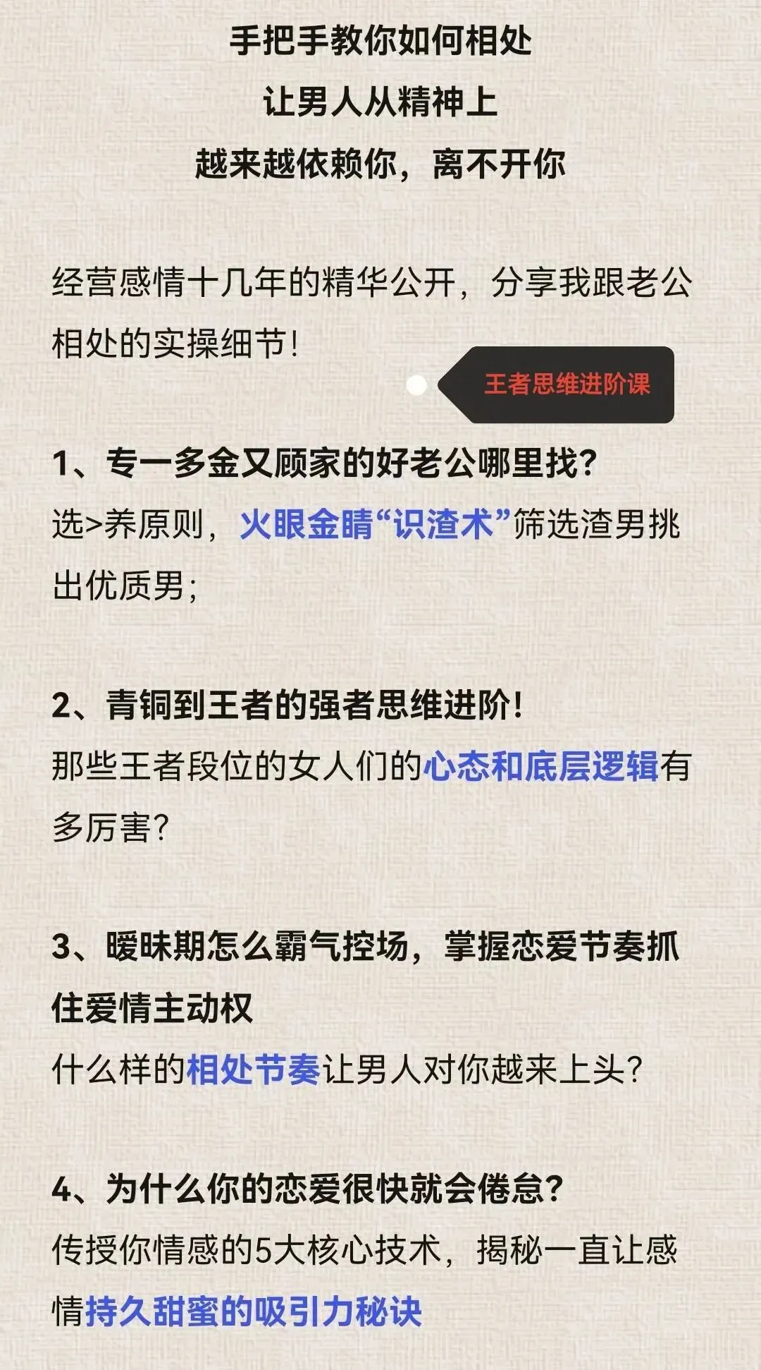 谈恋爱其实就是在营造一种感觉。这个感觉有好的,有坏的。你想要甜,那我就给你制造极致美好的感觉;你想被虐,那我就给你制造推拉反差的感觉。所以想拿下目标,想让他对你上头,你就要先清楚,他这个人更吃哪种感觉?是那种受虐型?还是受捧型?低自尊还是傲娇型?你把目标吃透了,他缺什么你就精准投喂。