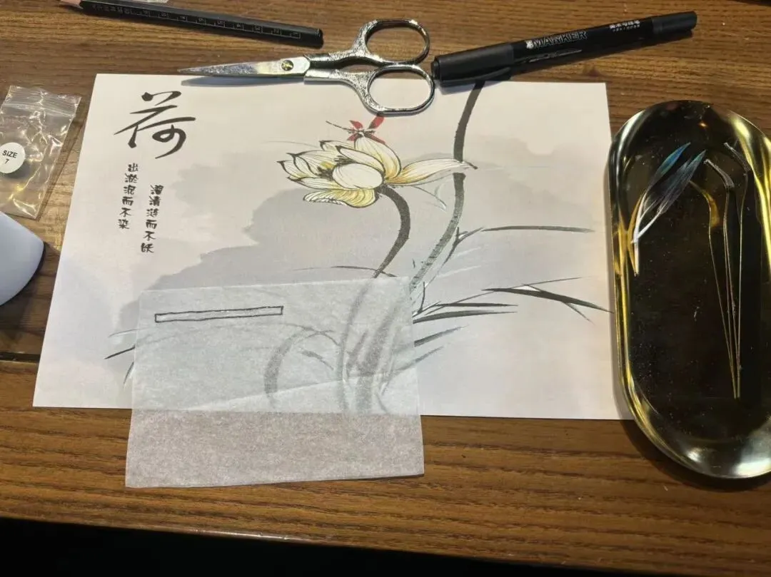 老师讲解着点翠的古老技艺,如何取羽,如何粘嵌,我则在一旁提醒:“老师们发的孔雀毛,数量有限,每人只有三根。这羽毛是真贵,不只是珍贵,大家可要省着点用。”又是一阵笑声。