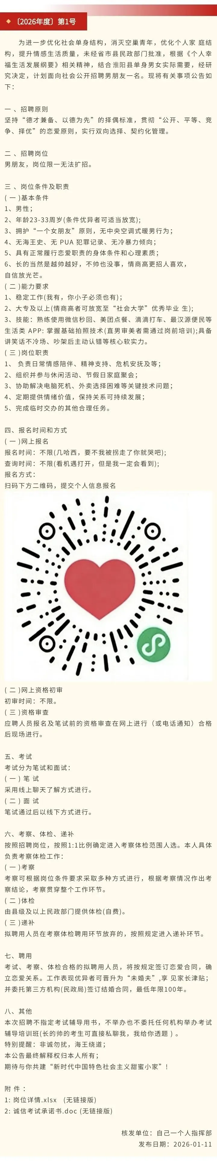关于面向淮阳公开招聘男朋友的公告