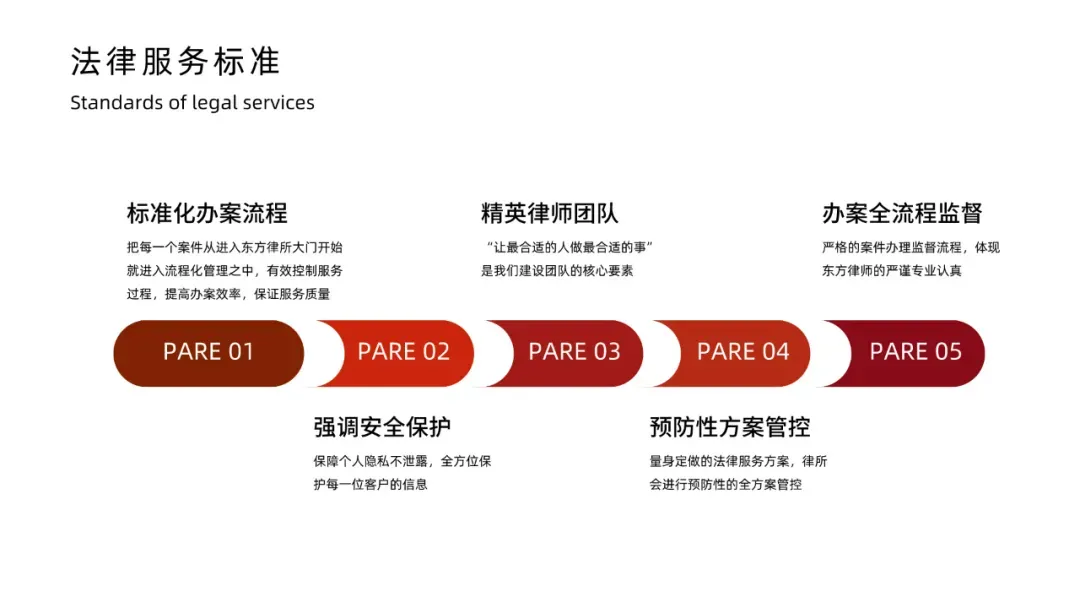 律所坚持走品牌化、专业化、特色化发展之路,注重专业化分工、开拓创新及团队协作精神。律所针对目前法律服务趋于多样性、分工精细化的特点,为适应发展需要,建立了以专业法律产品为核心的服务团队,内设多个法律事务专业部门。