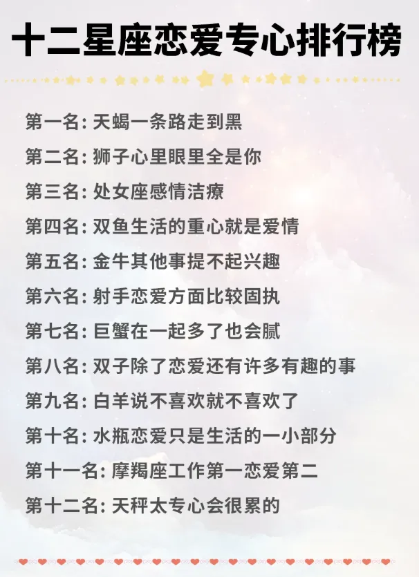 >12星座恋爱专心排行榜快来看看,准的狠~