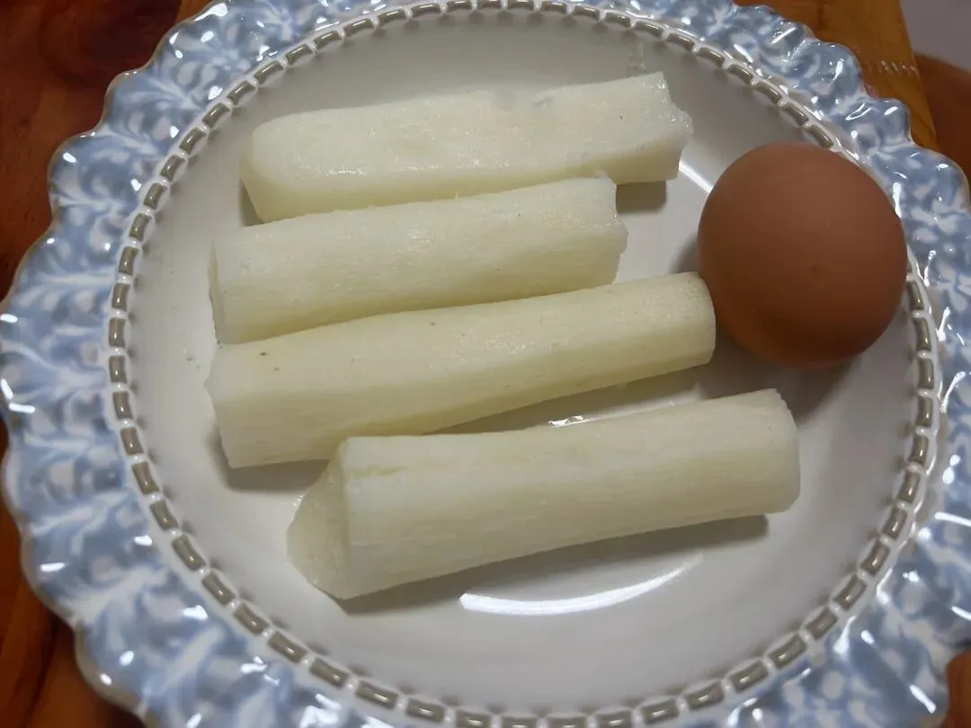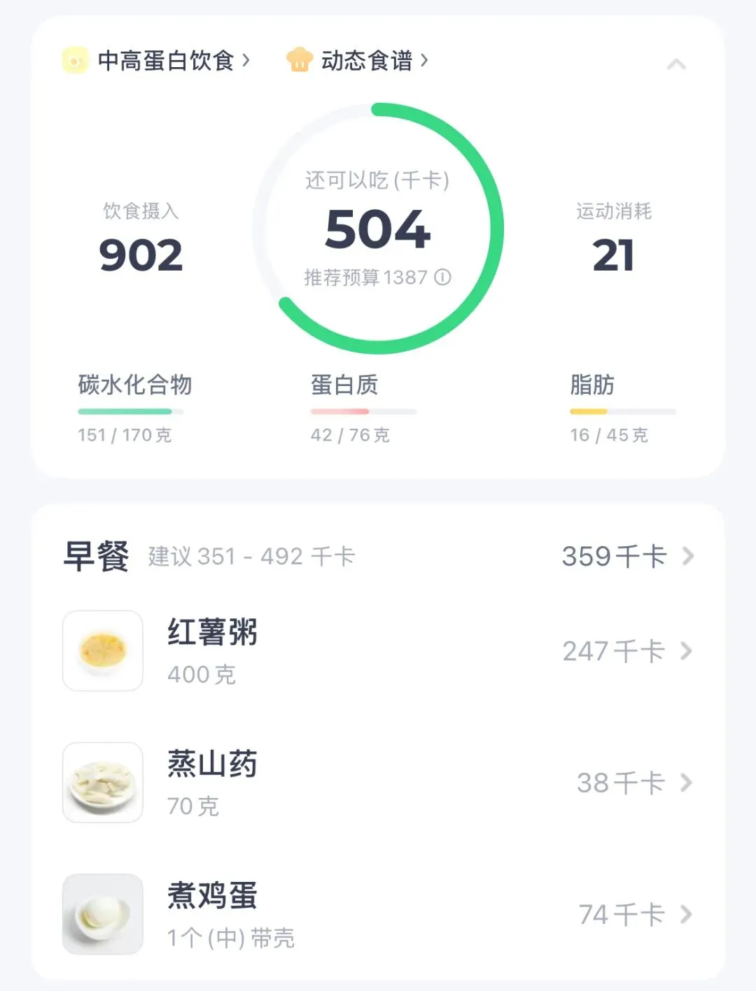 早餐:红薯稀饭一碗,蒸山药一截大概70克,水煮蛋一个。
