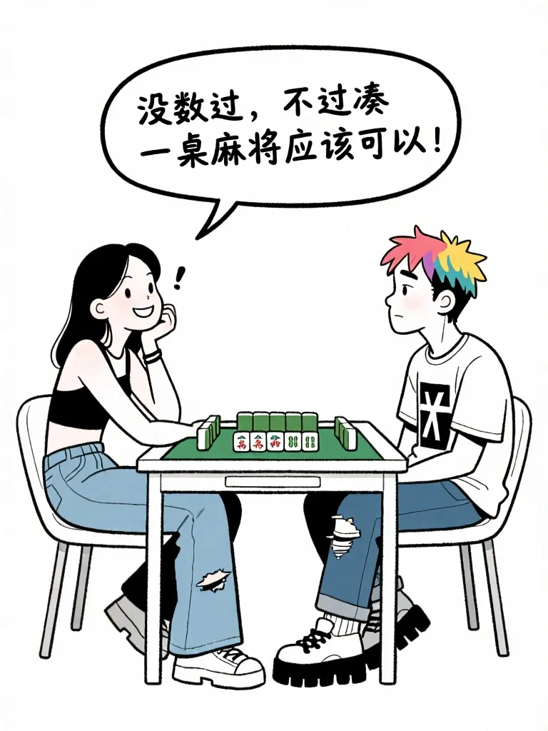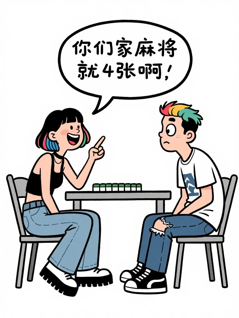 >趣味漫画:男:你谈过几个男朋友?女:没数过,不过凑一桌麻将应该可以,男:4个啊,女:你们家麻将就4张啊,