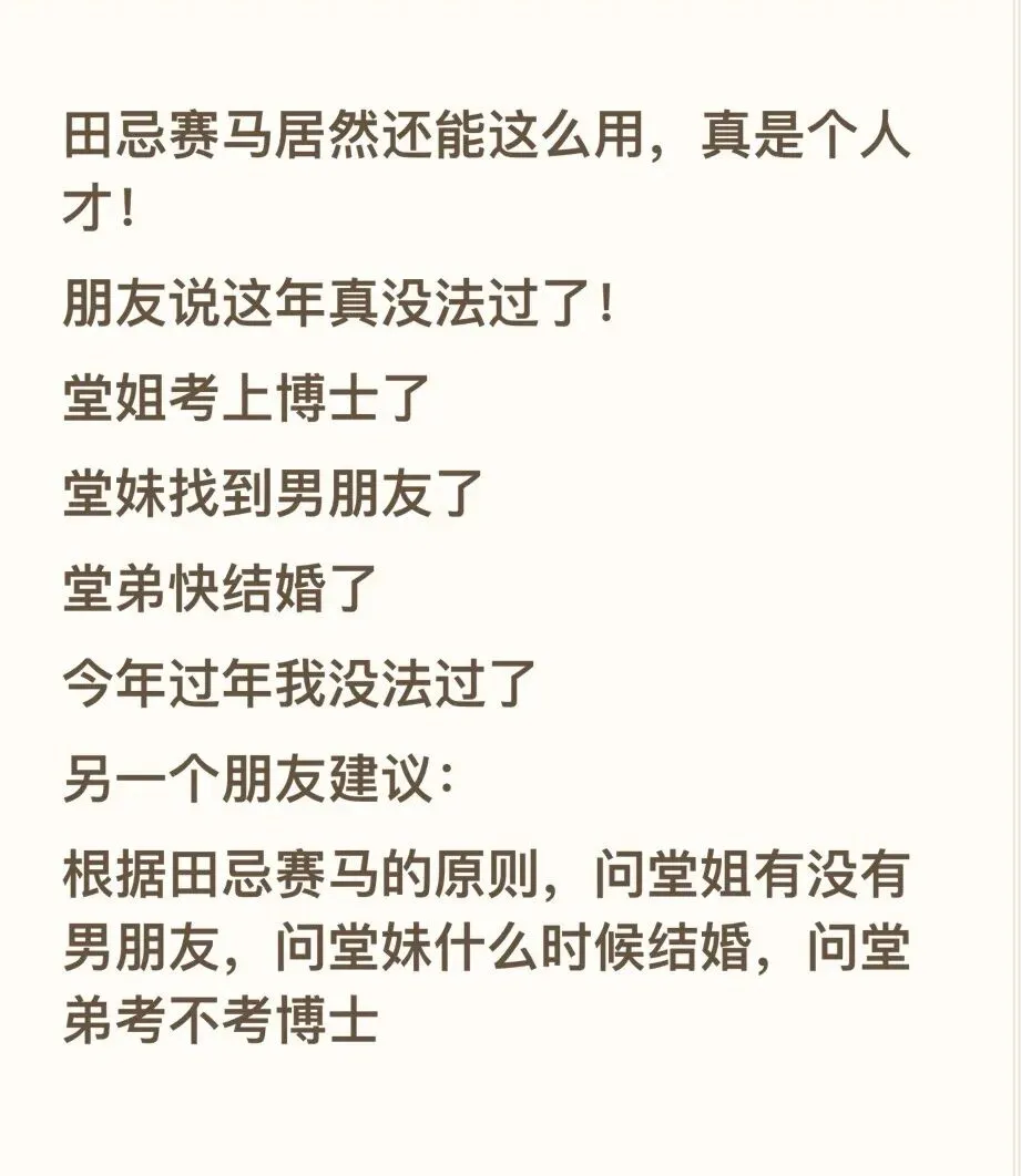 根据田忌赛马的原则,问堂姐有没有男朋友,问堂妹什么时候结婚,问堂弟考不考博士
