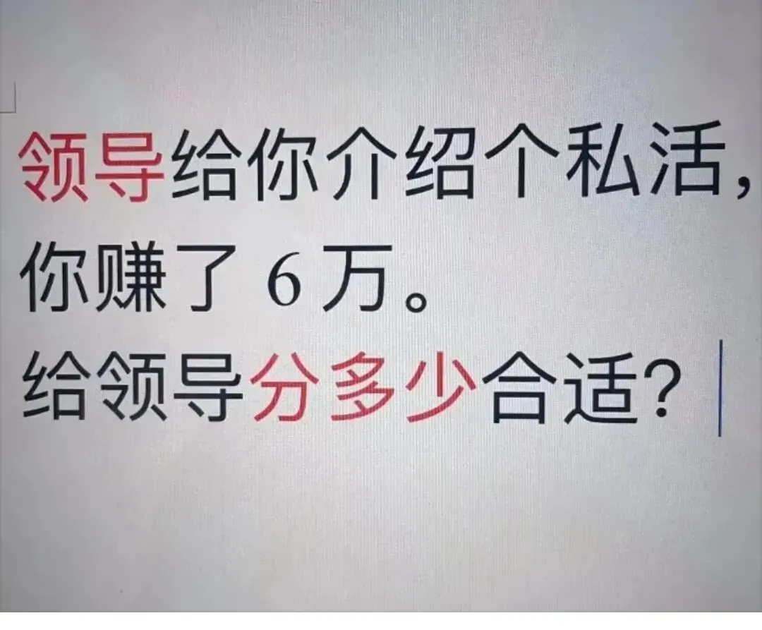 10.领导给你介绍个私活,你赚了6万,给领导分多少合适?