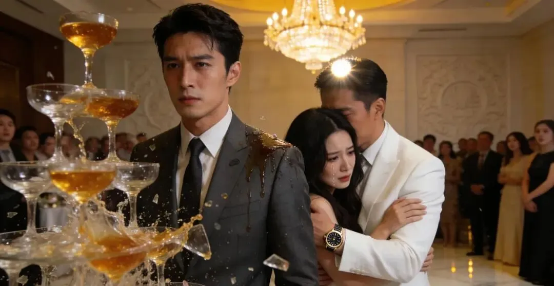 “砰!”一声巨响,价值不菲的水晶香槟塔在我眼前轰然倒塌,琥珀色的酒液混合着玻璃碎片,溅湿了我精心准备的阿玛尼西装。