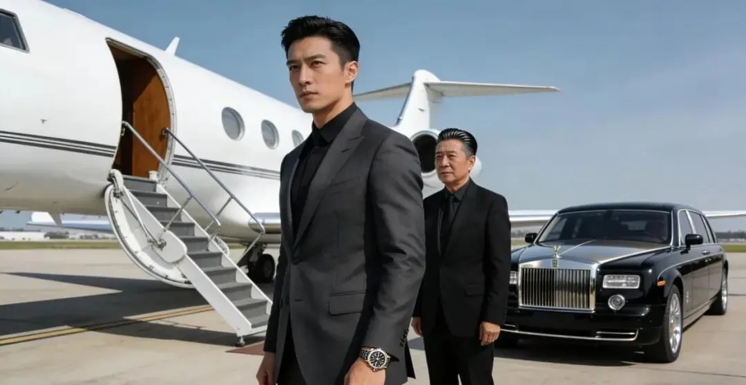 他的身后,停着一辆崭新的劳斯莱斯幻影,黑色的车身在阳光下流淌着金属的光泽,像一头蓄势待发的猛兽,充满了压迫感。