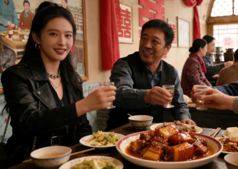 王雷刚伸出的筷子还没碰到肉皮,手腕就被身旁的上海女友死死攥住,指甲几乎嵌进了肉里。