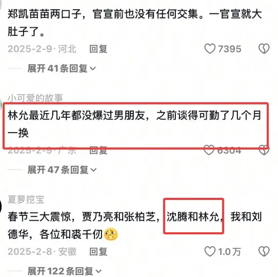 而且还有一点,林允以前很爱谈恋爱的,宋威龙、颜人中……几乎没有空窗期,可和沈腾闹绯闻后,就没听说她再谈恋爱了;