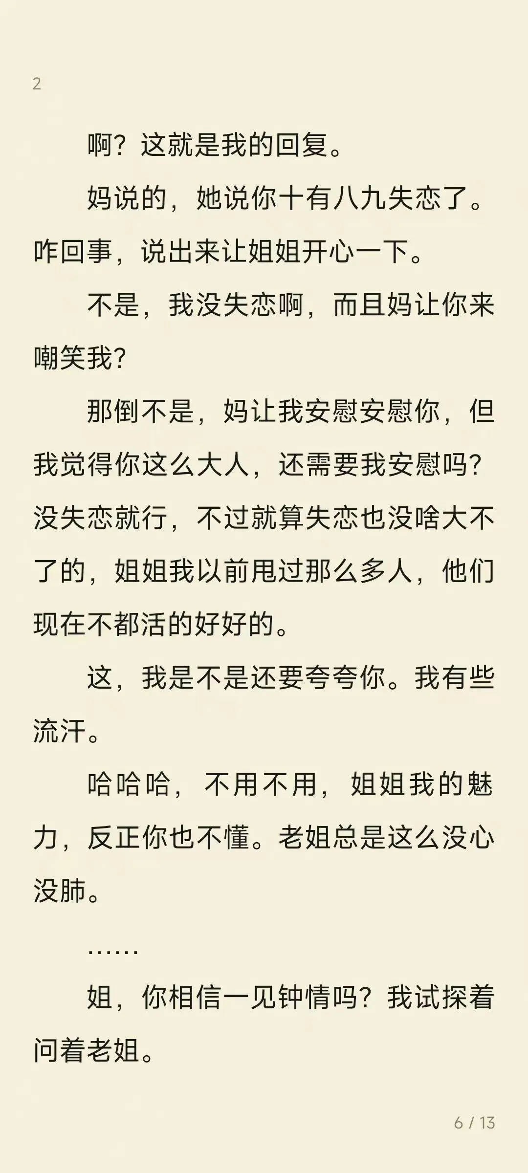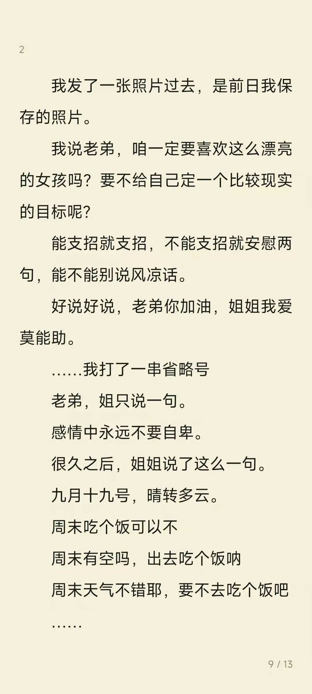 大家好呀,今天久违的不加班,和峰宝贝煮了小米粥,买了菜煎饼,简简单单的生活最幸福啦。今天给大家带来的是峰宝贝当年追潇姐儿写的第六章小说,和大家说一下哦,这个系列的小说是在潇姐儿公众号上连载的,大家可以多多关注潇姐儿哦。最后为我的峰宝贝打下call,一个有着小说梦的模块设计师,他的笔名是白柒栀,大家有番茄和微博的可以多多支持哦。