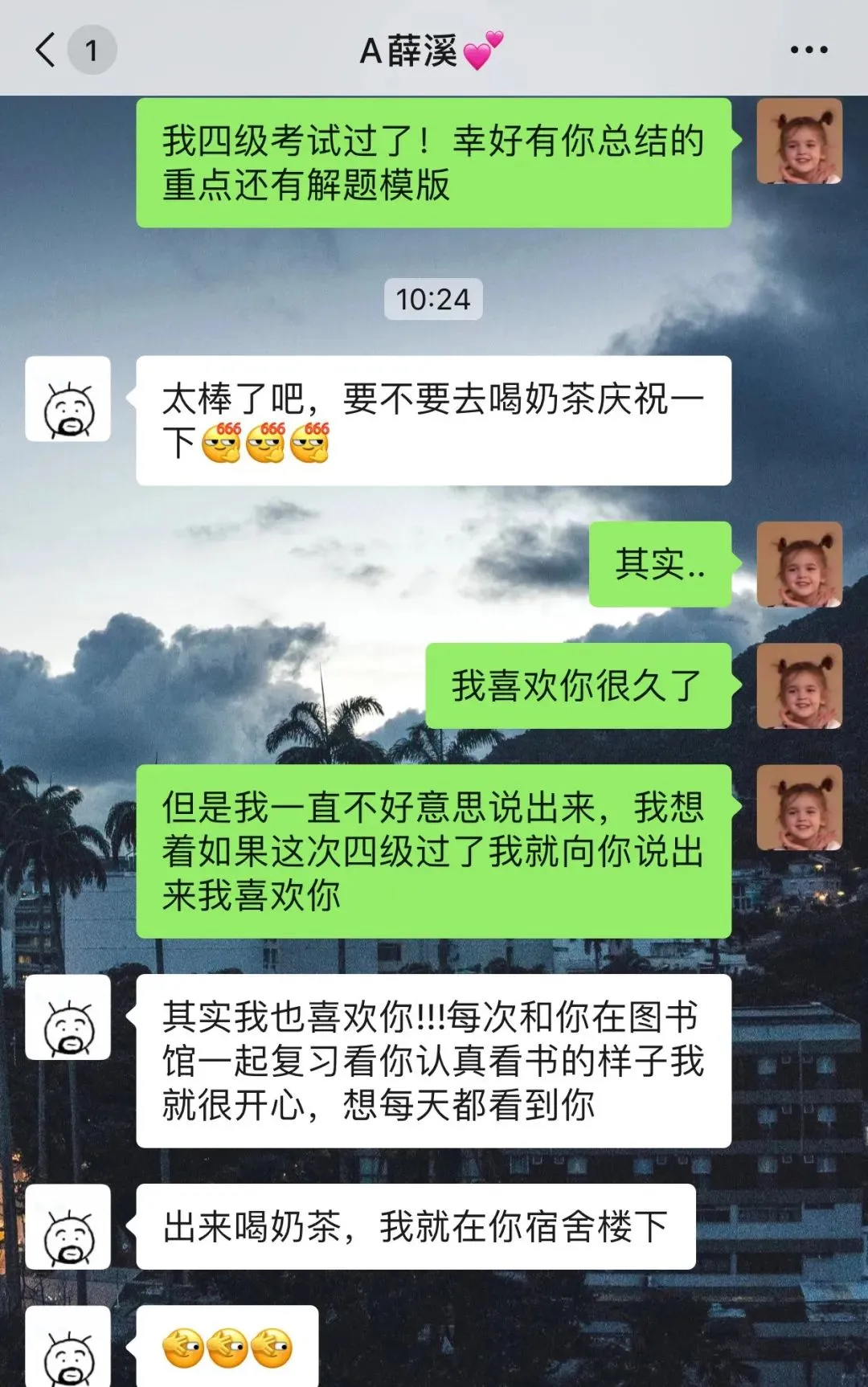 我为自己设定了一个目标:如果这次我的英语四级过了,我就向他表白心迹!在宣布英语成绩的那天,我重温了高考查分数的紧张气氛。尽管我对自己非常有信心,但是当查成绩时, 我甚至有了“早知道考前去拜拜锦鲤”的想法。事后想到它真的很幼稚。辛勤复习的回报是我的英语考了459分!我迫不及待地想与他分享 ,并终于有了勇气向他坦白。