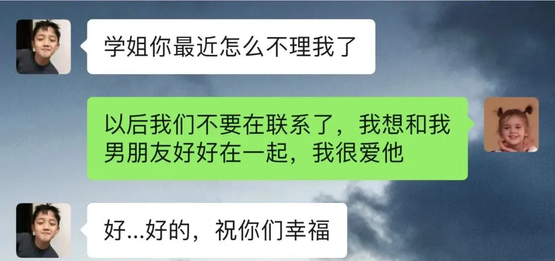 即使在本学期开始后,我们仍然保持密切联系。因为我熬夜,所以早上总是没法早起。我总是不去图书馆,上课时经常打哈欠 ,总是看我的手机,担心学弟会和我分享有趣的事情时,我没有立即回复。尽管我知道我和学弟这样做是不对的,但我总是忍不住阅读他给我分享的趣事,还经常花钱给他买衣服。
