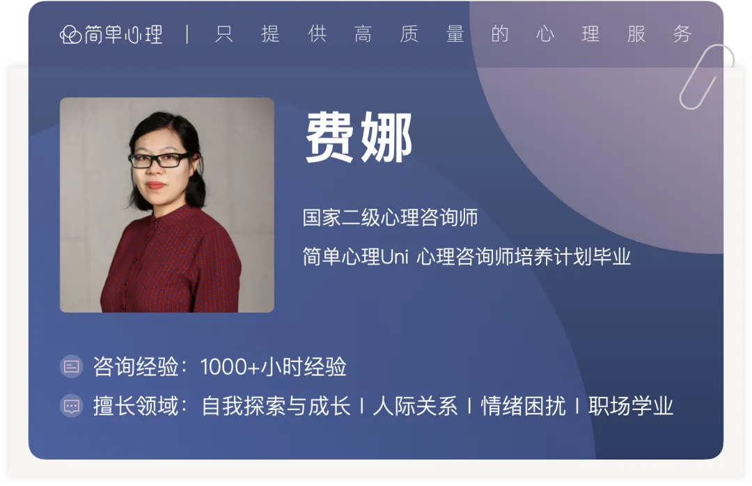 ▼ 以下是简单心理咨询师费娜的回答: