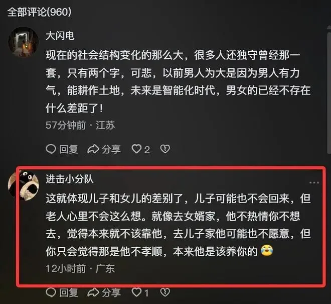 对社会而言,我们更该打破“养儿防老”“家产传男”的旧思想,完善养老体系,让父母的晚年有更多保障,不用再把所有希望都押在子女身上。