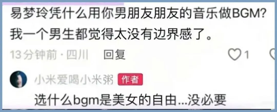 “易梦玲凭什么用你男朋友朋友的歌做BGM,我一个男生都觉得太没有边界感了”