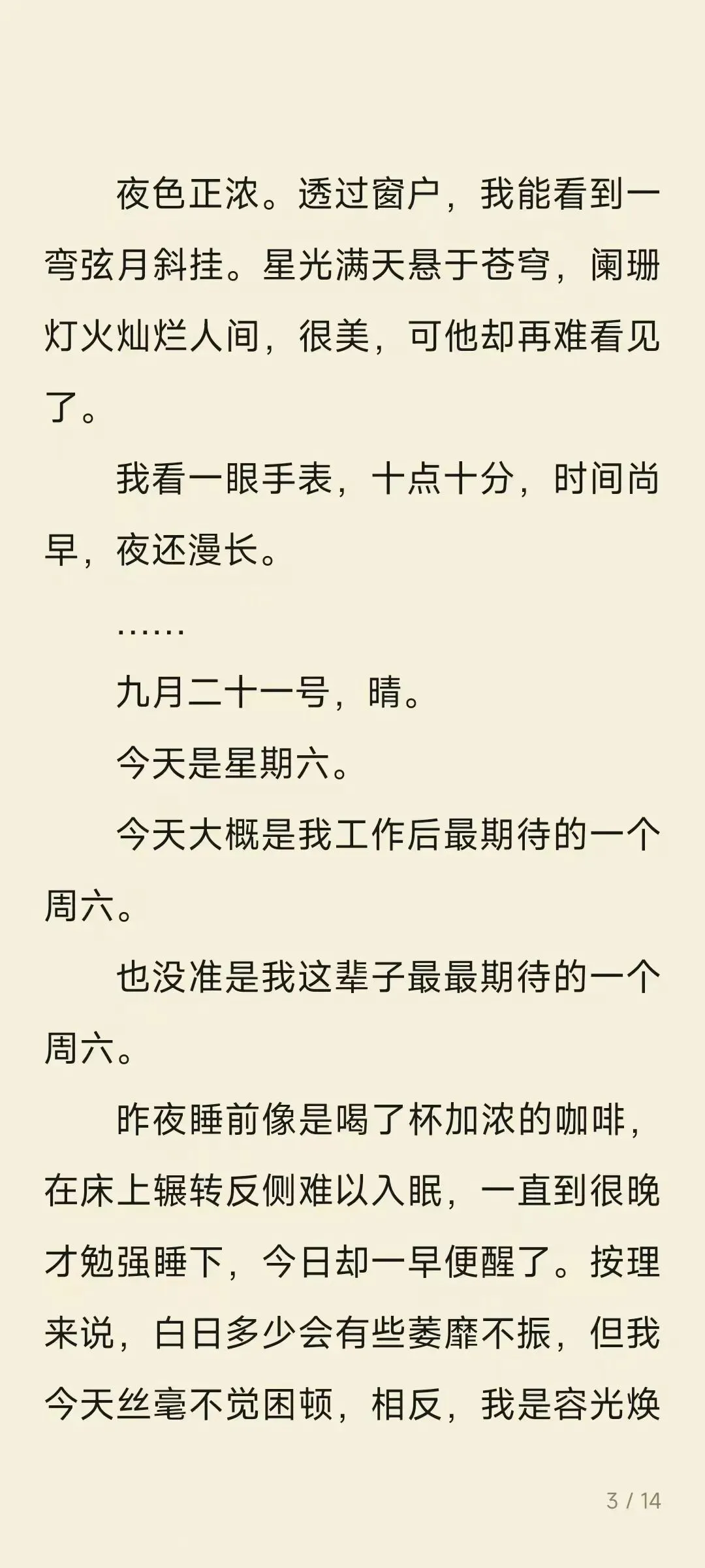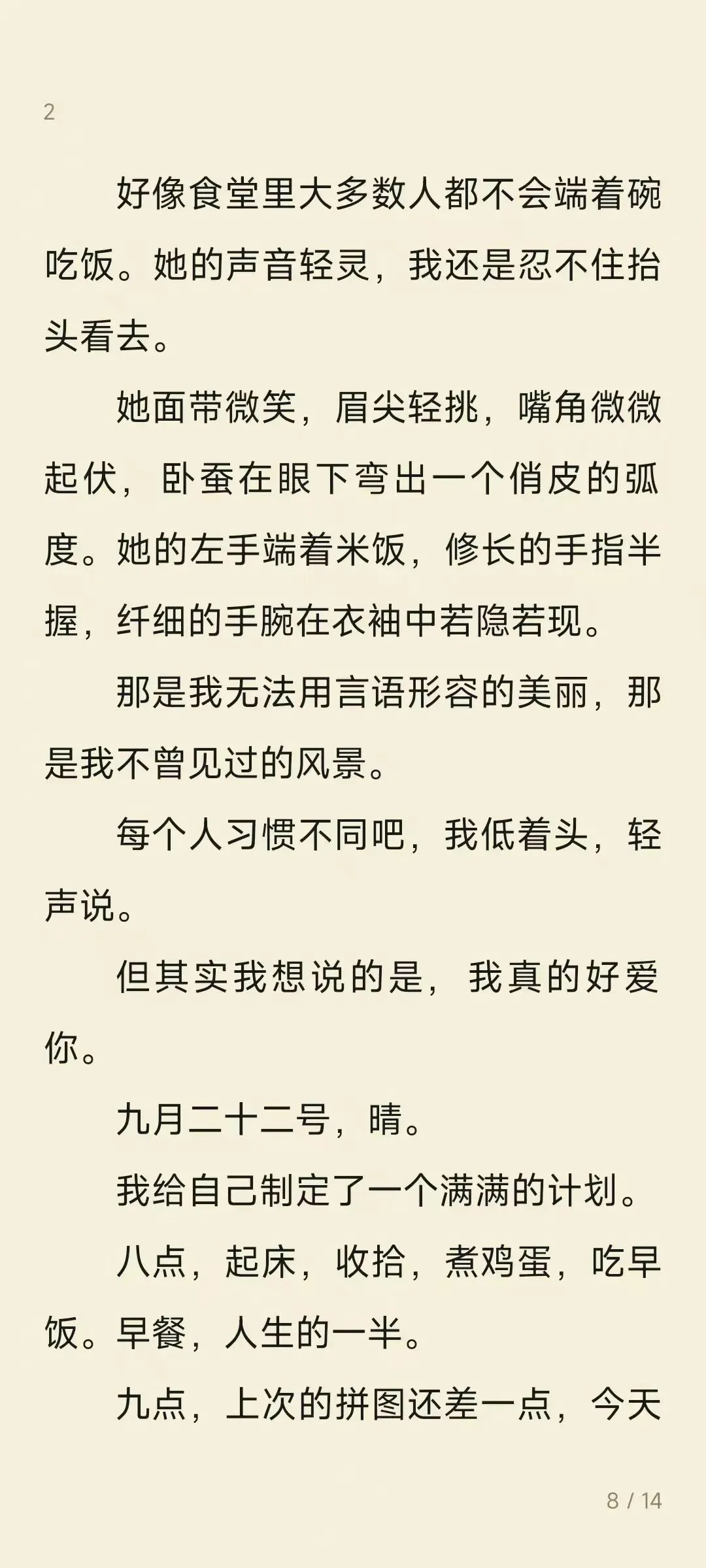 大家好呀,今天周五啦不加班,和峰宝贝一起去买了菜,回来做炒茄子和辣椒炒蛋,文末给你们看成品哦。潇姐儿今天给大家带来的是小说的第七章,写的是我们第一次吃饭的场景,当然是以峰宝贝的角度写的哦,绝对精彩。我们第一次相约吃饭是在单位食堂,记得那天是个周六,潇姐儿第一次仔细看到峰宝贝,那会他还很瘦,头发吹得高高的,后来峰宝贝和我说是特意跟着小红书学的显高,那天吃的什么早已模糊,只记得那天是峰宝贝刷的卡,潇姐儿的心情既紧张又激动,我们坐在斜对角,不相熟的两人就开始了第一次对话。后来呀,我和峰宝贝在一起后吃了无数次的饭,每天三餐基本都在一起,两个相爱的人就要在一起吃好多好多顿饭。最后为我的峰宝贝打下call,一个有着小说梦的模块设计师,他的笔名是白柒栀,大家有番茄和微博的可以多多关注哦。