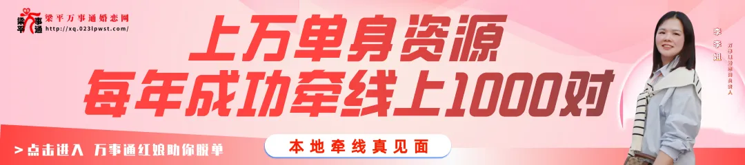 希望找个性格三观合得来,真诚善良的另一半,在成都或者重庆上班均可。点击进入链接,认识ta>梁平万事通婚恋