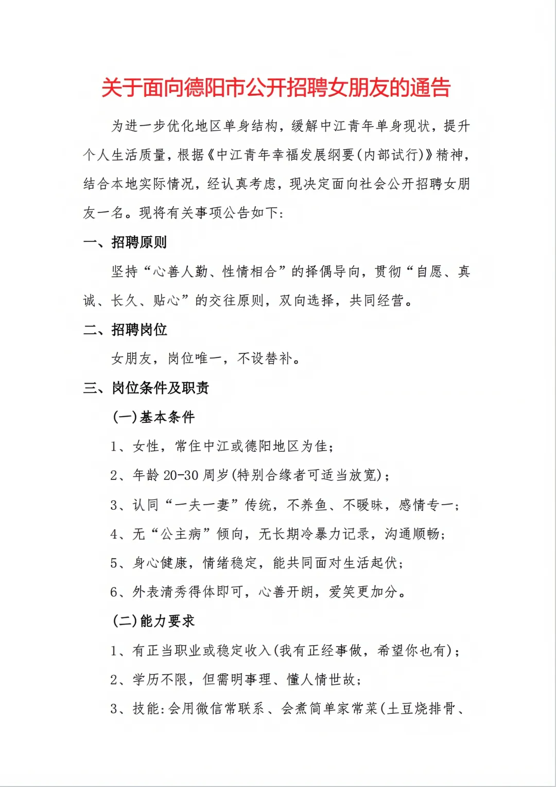 关于面向德阳市公开招聘女朋友的通告