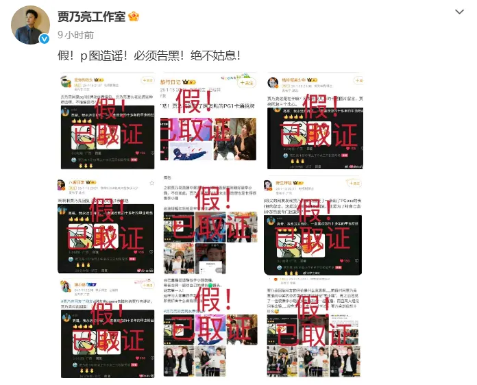 然而!就在今天,贾乃亮工作室发文表示,“贾乃亮回复网友表情包”一事为P图造谣,必须告黑,绝不姑息,并附上了取证的截图。