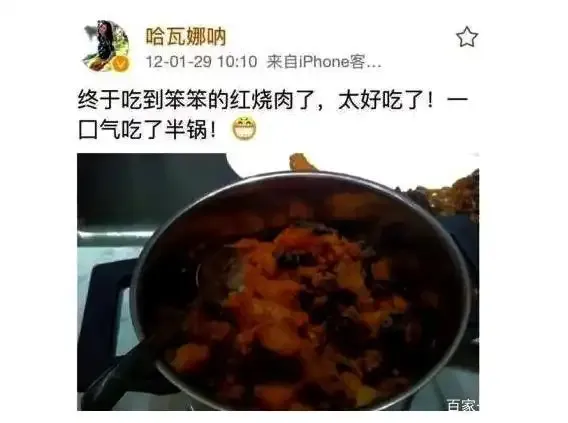 最终,众人顺藤摸瓜,找到一个名为“哈瓦娜娜”的微博,发现了那条著名的“笨笨的红烧肉”,王石与田朴珺自此走入公众视野。