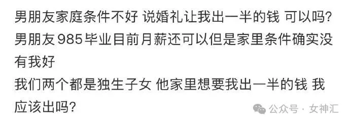 >男朋友家庭条件不好,说婚礼让我出一半的钱可以吗?我该怎么办?