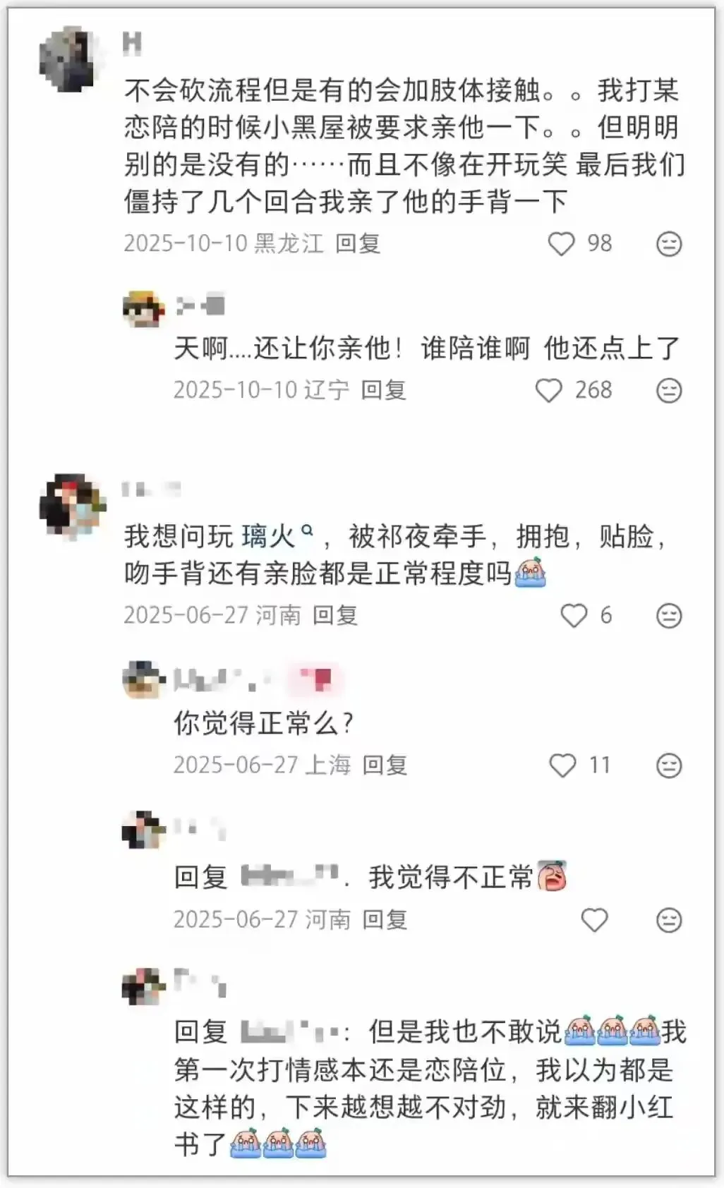随着行业竞争加剧,互动尺度不断刷新底线:隔手亲吻、嘴对嘴点火已不稀奇,最新的恋陪本甚至出现带有明显性暗示的边缘互动。