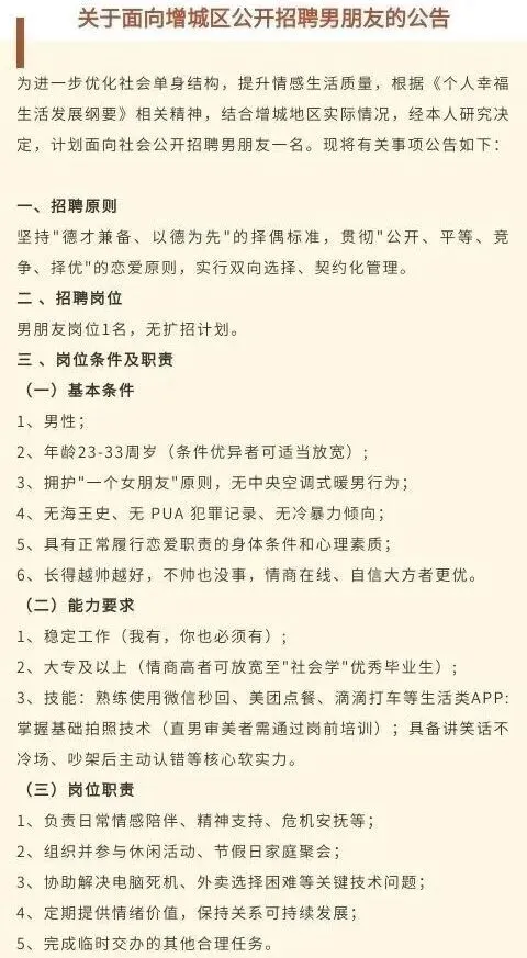 “公开招聘男朋友”的公告刷屏?