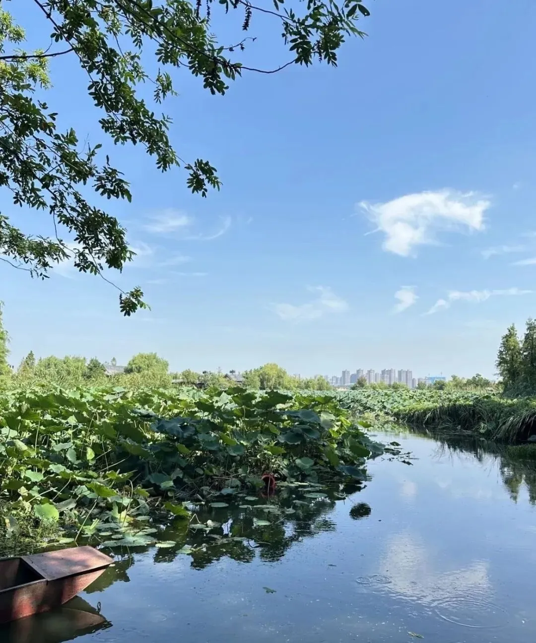 荷花还在开,左边是树,右边是湖,中间的马路两边是最爱的梧桐树,我们俩漫无目的走在路上,打打闹闹。没成想,一坨鸟屎刚好落在我的头上和衣服上,气愤的同时,还将手里的伞丢在共享电瓶车上了。等回去找,车早已没了影。